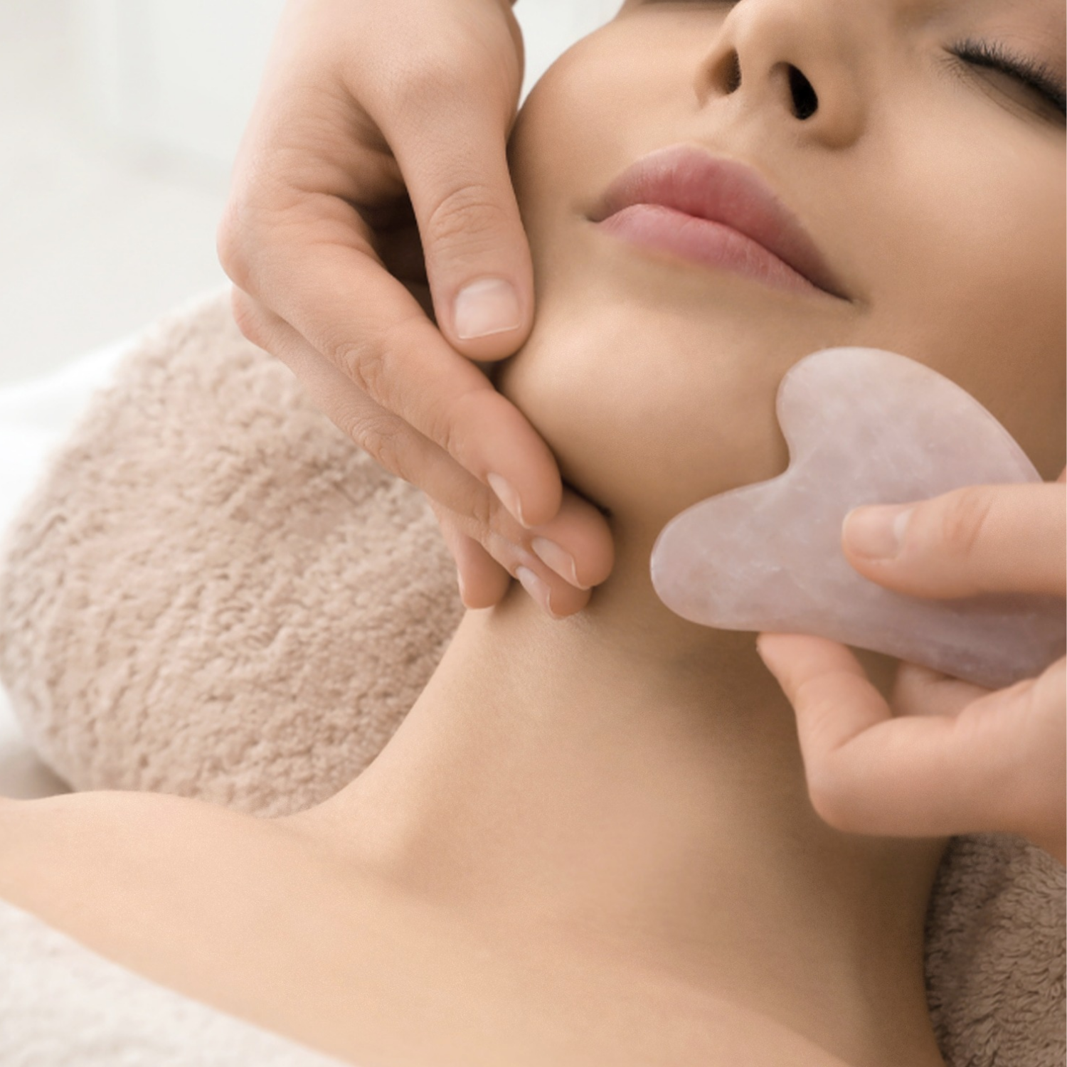 ยกกระชับผิวให้ดูอ่อนเยาว์อย่างเป็นธรรมชาติ โปรแกรมปรนนิบัติผิวหน้าแนวล้ำลึก ช่วยยกกระชับใบหน้า ลดริ้วรอย พร้อมกระตุ้นคอลลาเจน ให้ผิวแน่น เฟิร์ม และสว่างกระจ่างใส ด้วยเทคนิค Gua Sha บำรุงล้ำลึก 3 ขั้นตอน